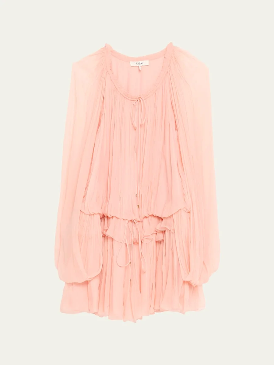 MINI CAPE DRESS IN SILK MOUSSELINE