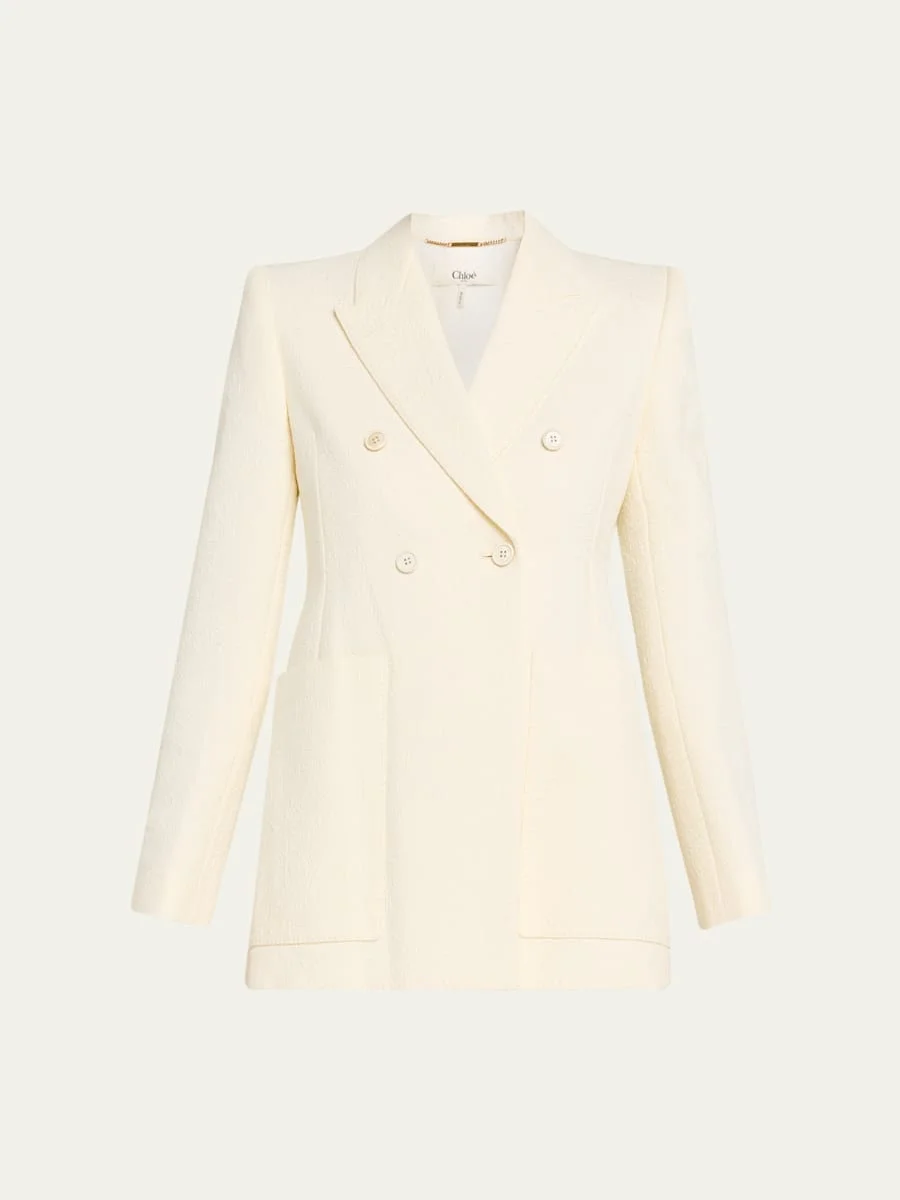 Chloe jacket in a paisley jacquard Peak lapels; double-breasted front Long sleeves Hip patch pockets Slim fit Hem falls below the hip Cotton/nylon/polyamide Lining: Silk Made in Italy Online Inquiries: BGS21_B9VK8| Store Inquiries: #4982888