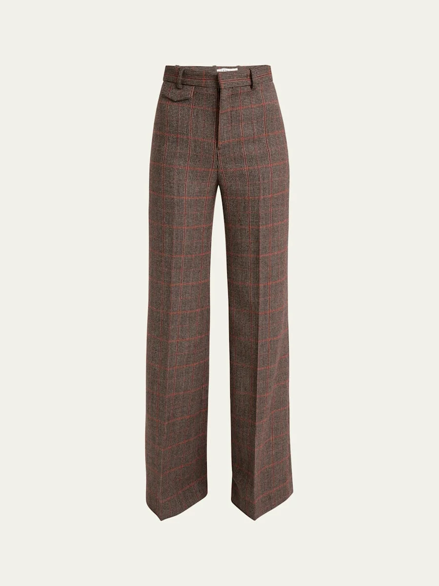 Chloe pants fetauring a plaid motif and a hip flap pocket High rise Flat front Back welt pockets Wide legs Full length Hook/zip fly; belt loops Wool Dry clean Imported Online Inquiries: BGS21_BA3CJ| Store Inquiries: #5024475