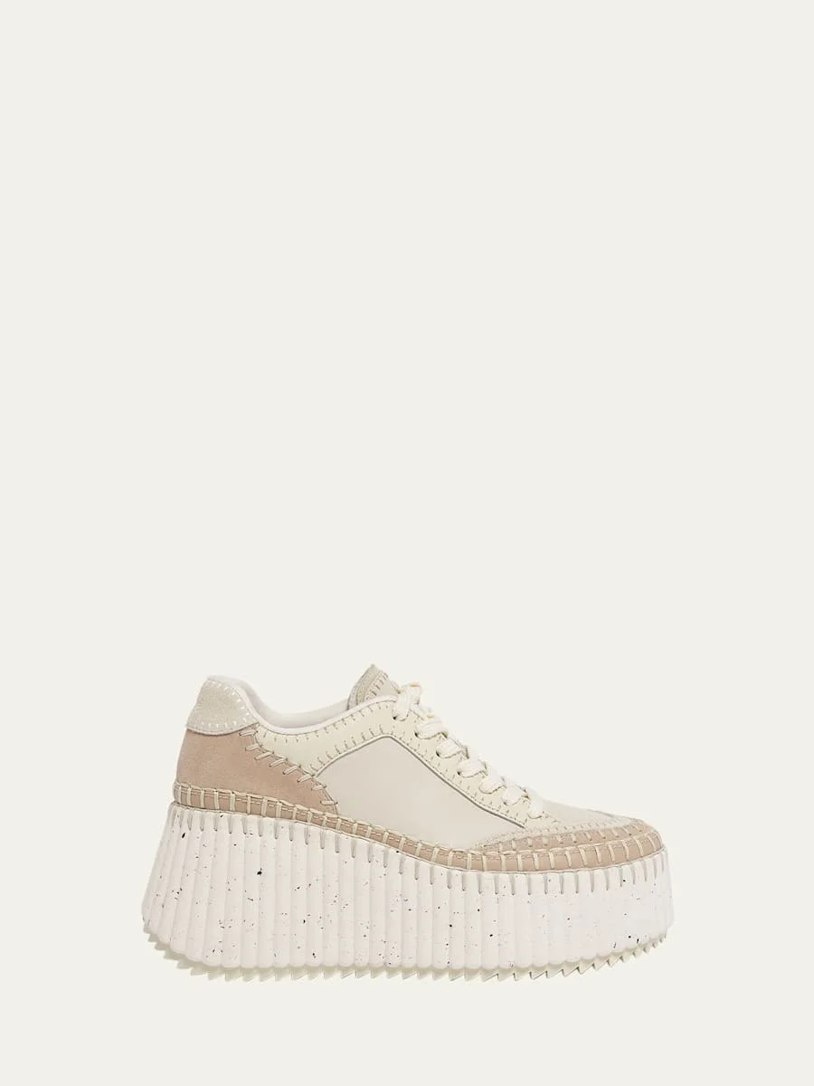 Chloe sneakers in leather and suede 2.00 in / 50 mm platform heel Round toe Lace-up vamp Lining: Polyester Speckled midsole Rubber outsole Professional cleaning recommended Imported Online Inquiries: BGS21_X6ZAS| Store Inquiries: #4775421