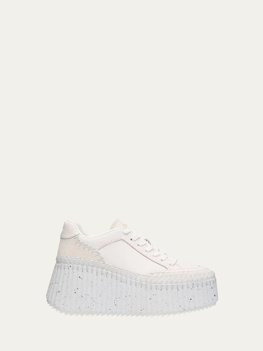 Chloe sneakers in leather and suede 2.00 in / 50 mm platform heel Round toe Lace-up vamp Lining: Polyester Speckled midsole Rubber outsole Professional cleaning recommended Imported Online Inquiries: BGS21_X6KF3| Store Inquiries: #4775421