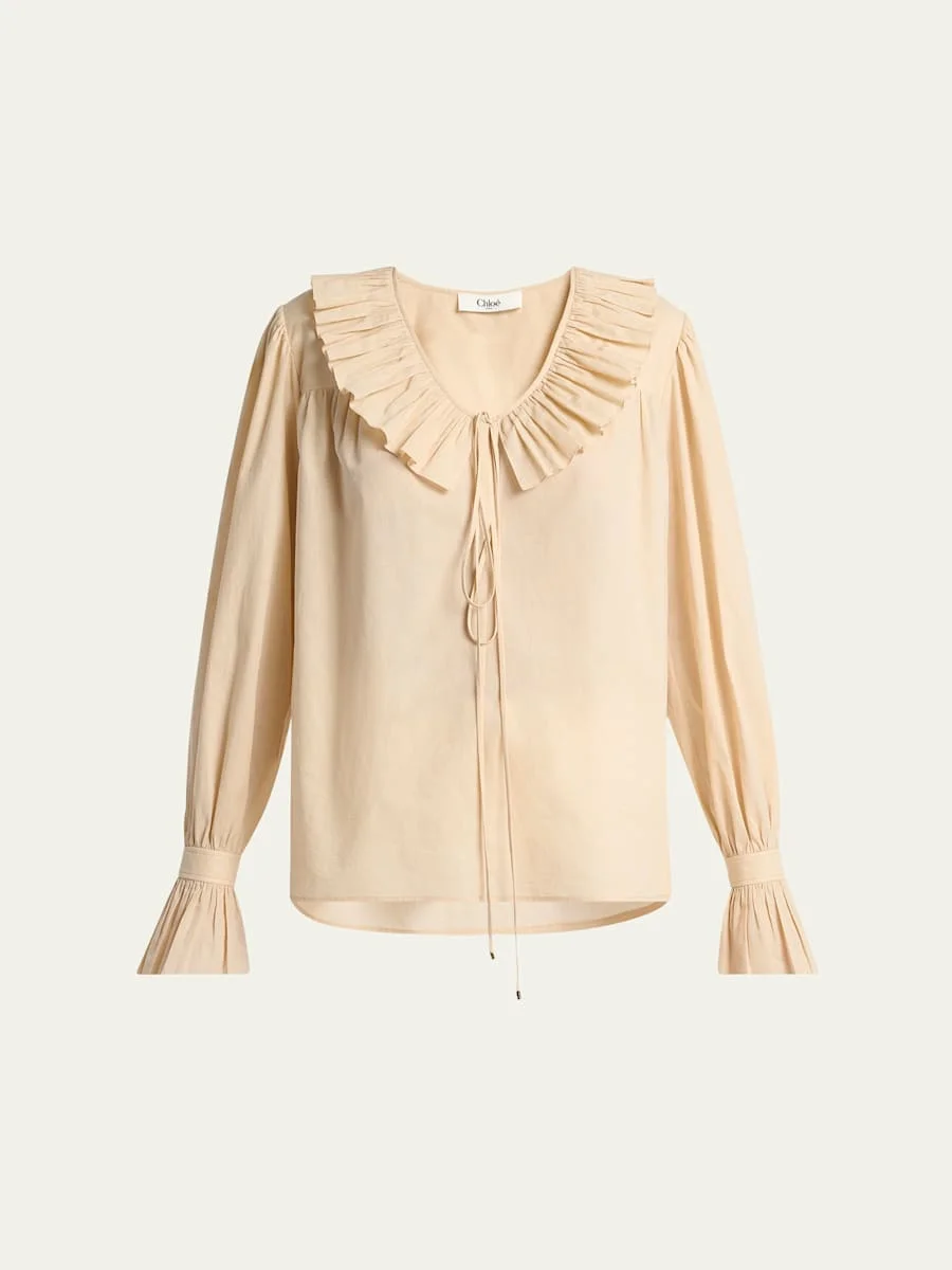 Ruffle Cotton Voile Blouse