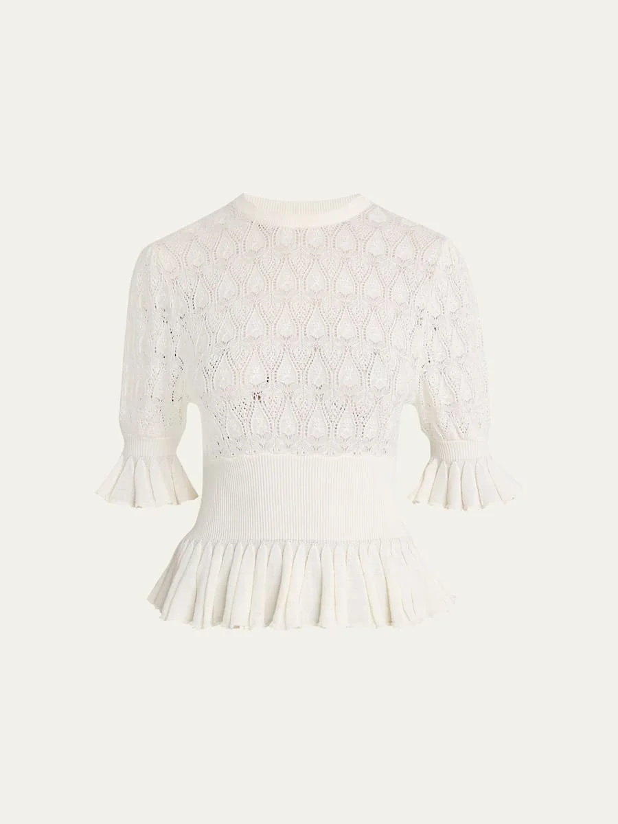 Short-Sleeve Pointelle Peplum Sweater