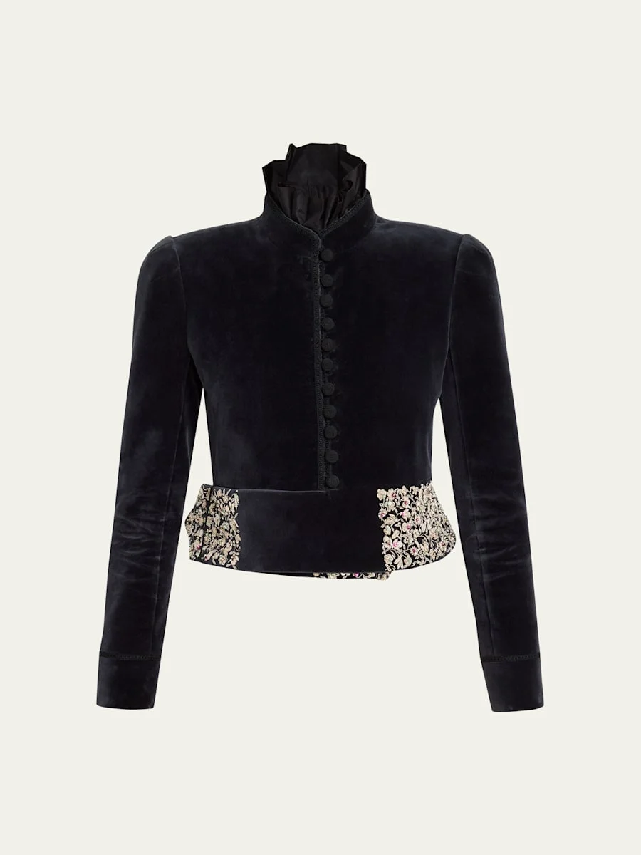Spencer Embroidered-Belt Velvet Crop Jacket