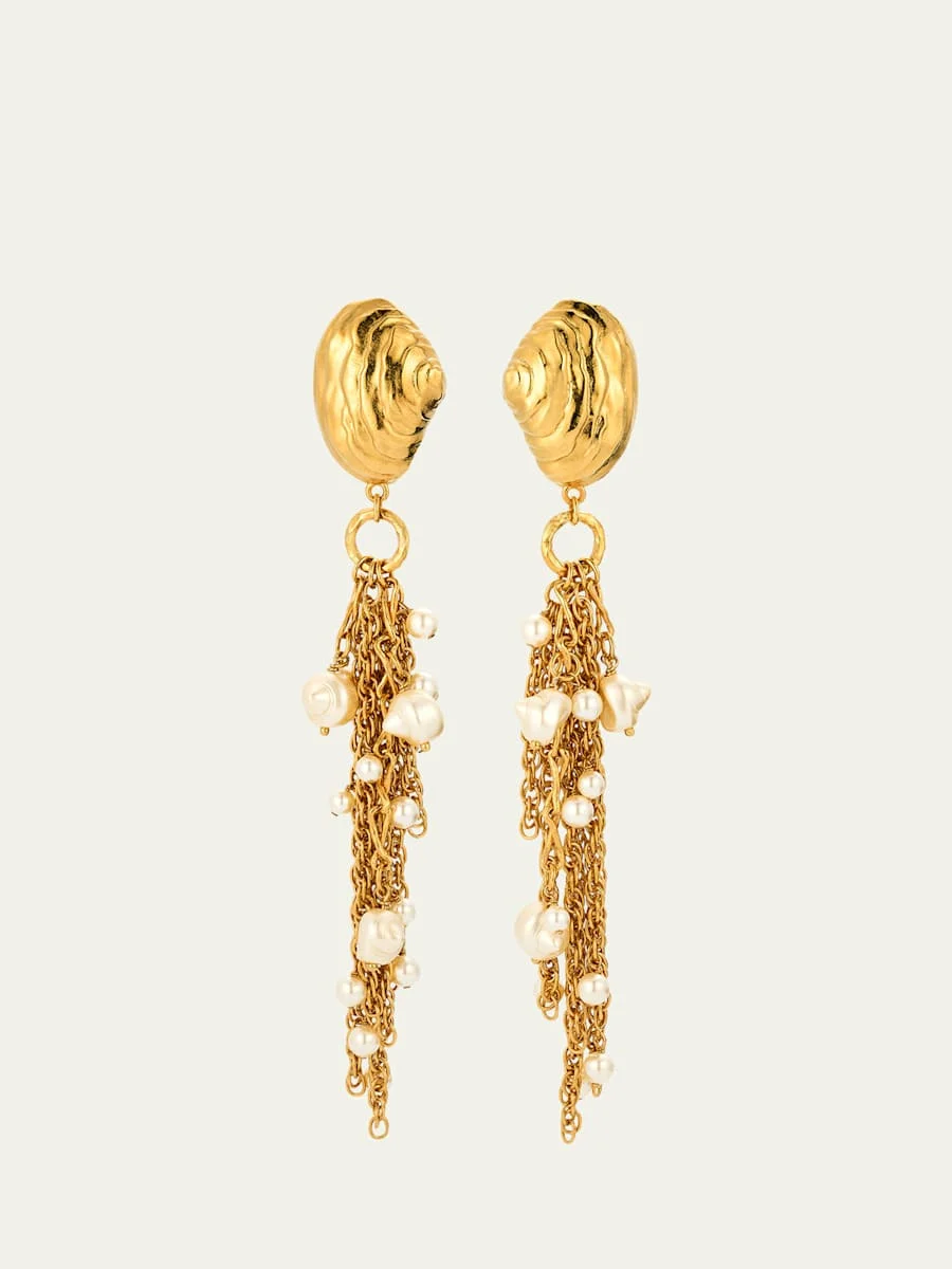 Chloe dangle earrings Goldtone brass and faux (resin) pearls For pierced ears Made in Italy