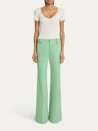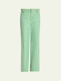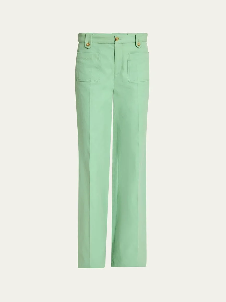 Chloe garment dye organic cotton canvas pants Full length Mid rise sits high on hip Wide legs Front patch pockets; back patch pockets Button/zip fly; belt loops Cotton Dry clean Made in Italy Online Inquiries: BGS21_BA6YY| Store Inquiries: #5043269