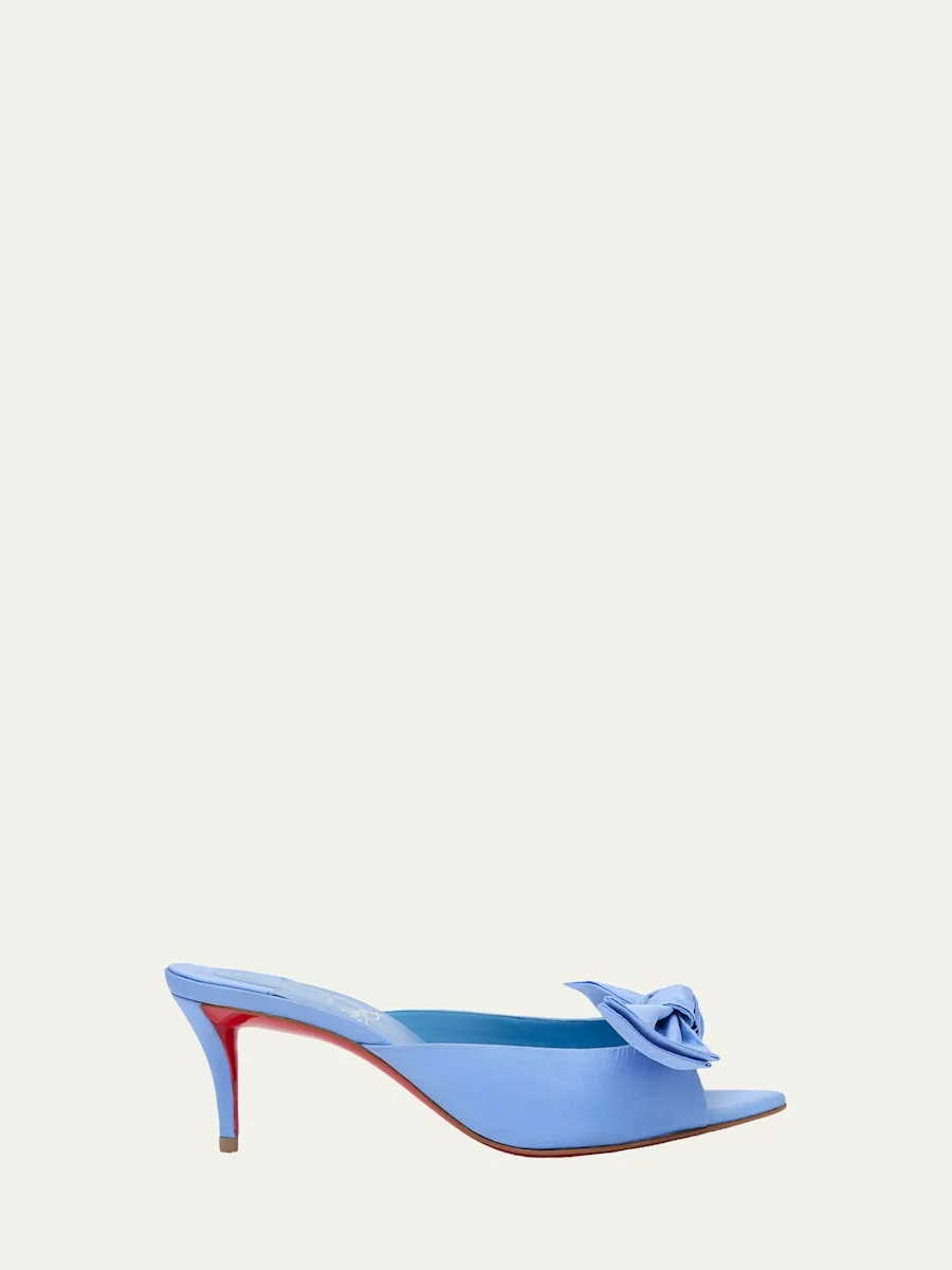 Christian Louboutin's "Mulazee" mule pumps are crafted from taffeta with a selftie bow upper 2.36 in / 60 mm kitten heel Pointed open toe Easy slide style Silk upper Signature Louboutin red leather outsole Made in Italy