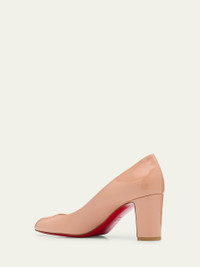 Christian Louboutin patent leather pump. 2.75 in / 70 mm block heel Square toe. Slipon style. Padded footbed. Signature red leather sole. "Cadrilla" is made in Italy.