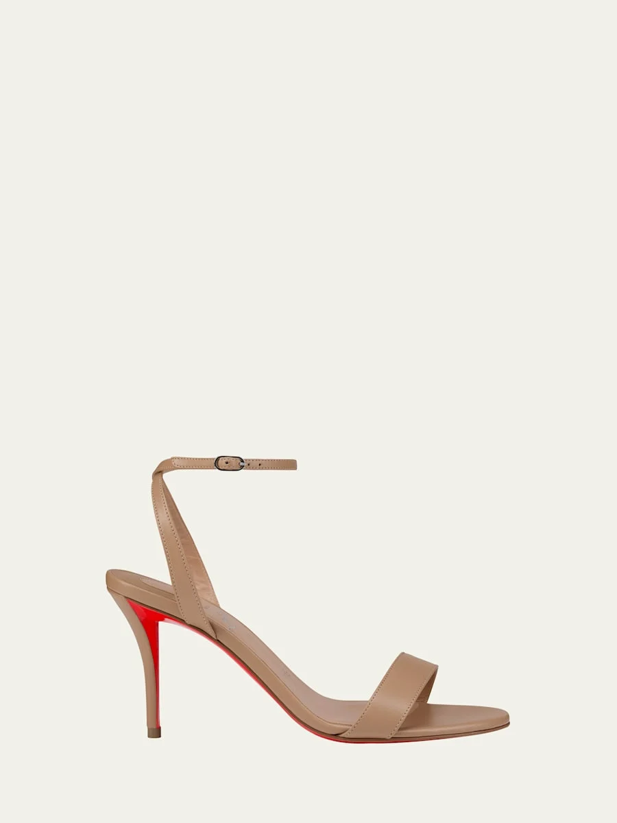 Christian Louboutin "Miss Z" smooth leather sandals 3.15 in / 80 mm stiletto heel Open toe Adjustable ankle strap Signature red leather outsole Made in Italy