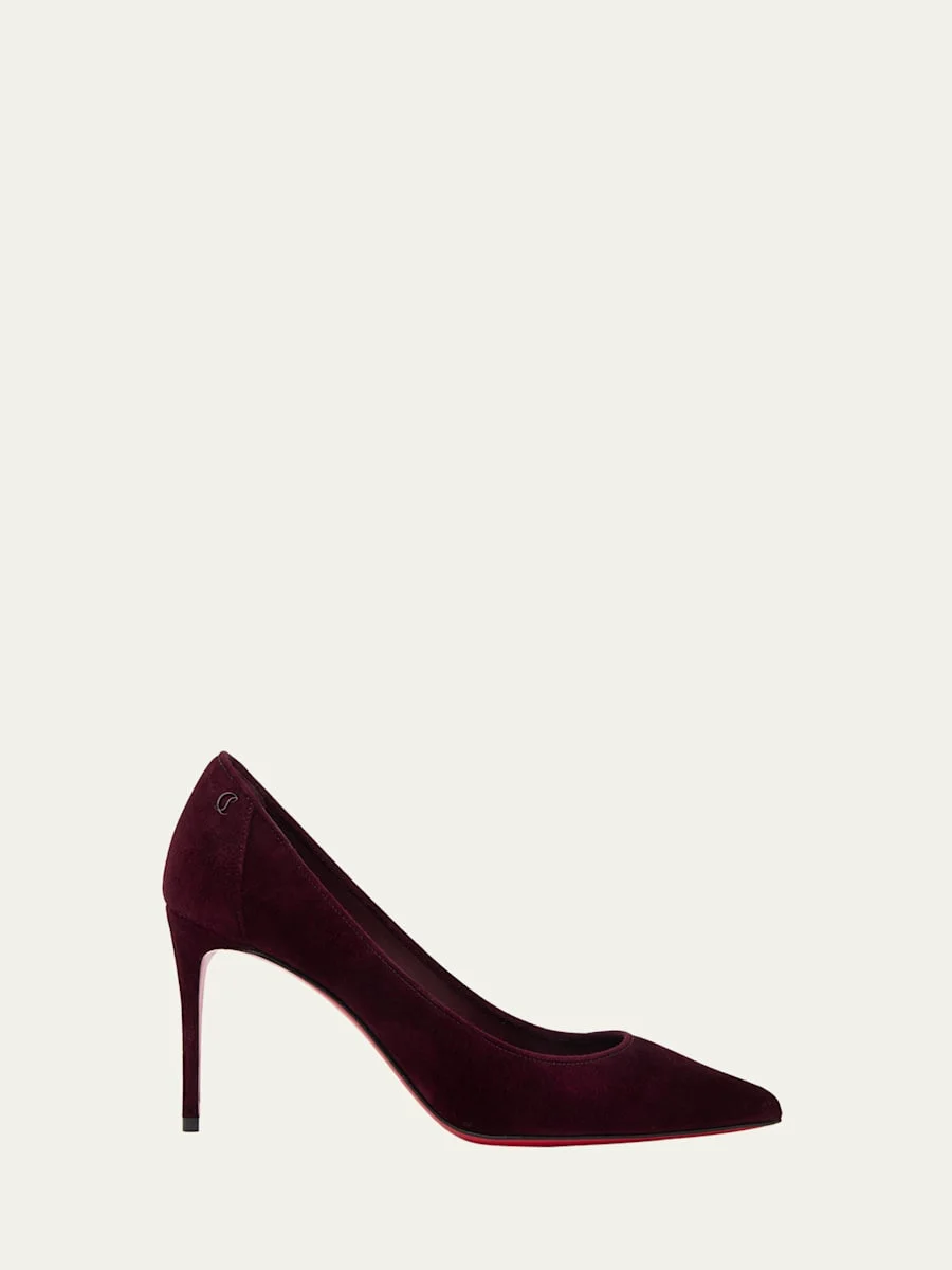 Made from supple calf suede, the "Sporty Kate" pumps by Christian Louboutin are finished with tonal stitching and a logo detail at the heel counter 3.25 in / 85 mm covered stiletto heel Pointed toe Slipon style Signature Louboutin red leather outsole Made in Italy