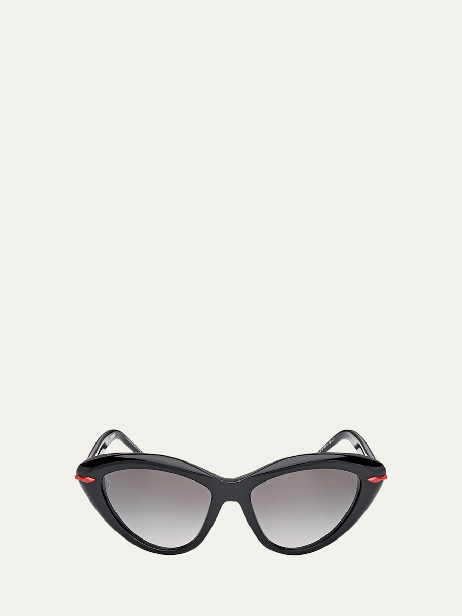 Christian Louboutin cat-eye sunglasses in acetate Eye/bridge/temple (in mm): 56-17-135 Gradient lenses Saddle nose bridge Thin, tapered arms Logo at lens Acetate Spot clean 100% UVA/UVB protection Made in Italy Proposition 65 warning for California residents Online Inquiries: BGS21_D59GA| Store Inquiries: #5028801