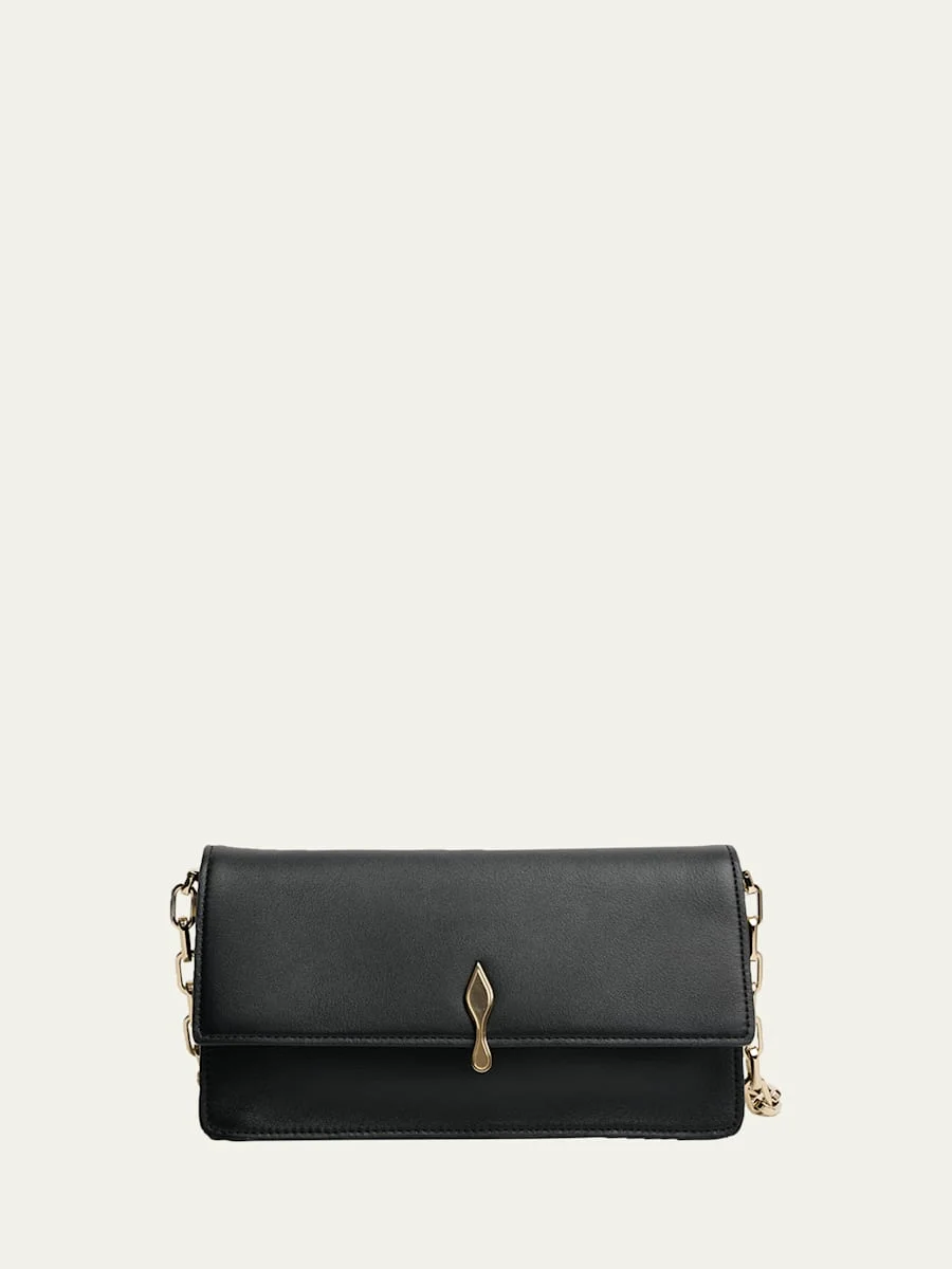 This Christian Louboutin "Bettina" crossbody bag is crafted in nappa leather with the signature sole icon accent Chain/leather crossbody strap Flap top with magnetic closure Center zip divides interior Signature red interior Approx. 5.3"H x 9.3"W x 3.9"D Made in Italy