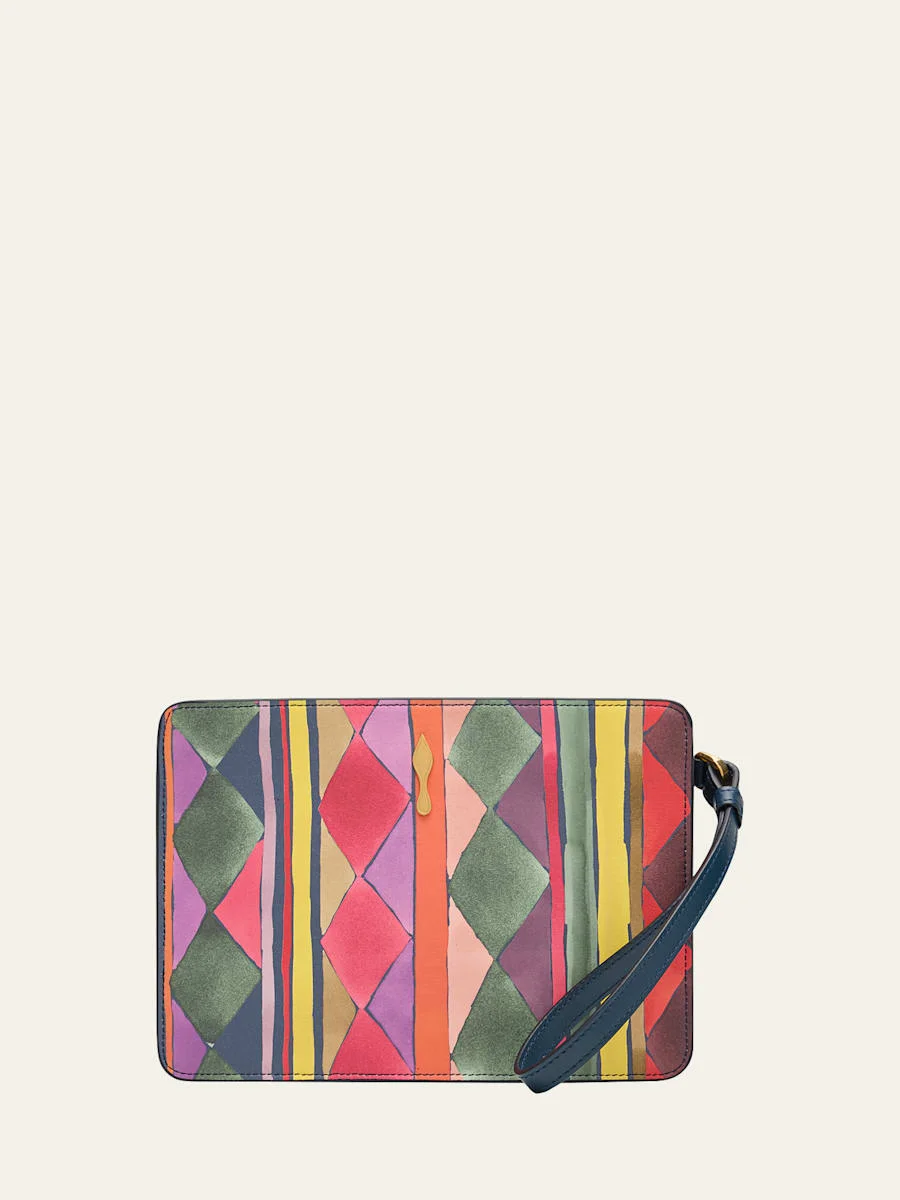 Bettina Small Wristlet Pouch Bag in Losange-Print Leather
