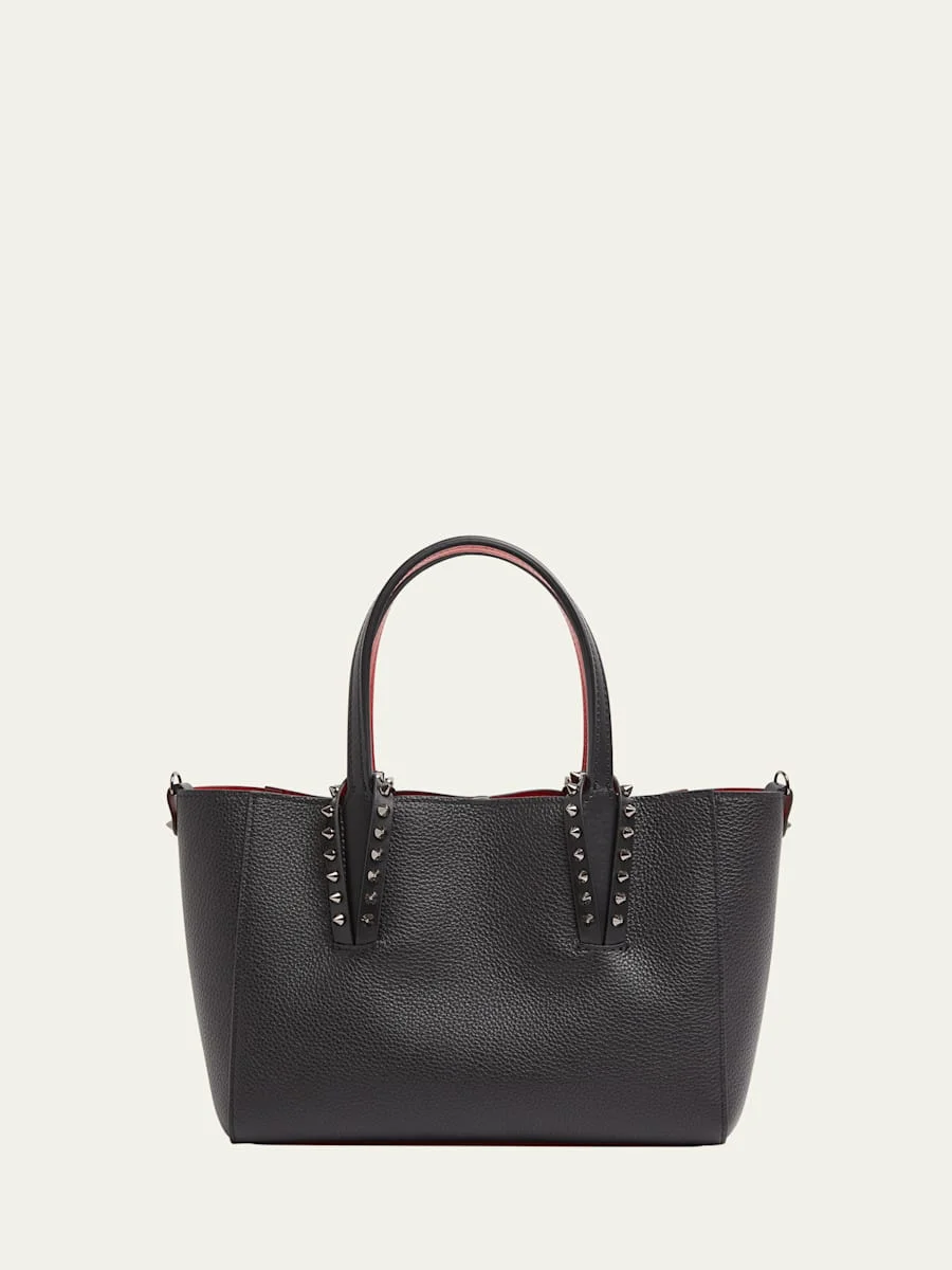 Christian Louboutin "Cabata" soft east-west shoulder bag in grained leather Top handles with spike trim Detachable, adjustable web crossbody strap Can be worn as a top handle, shoulder, or crossbody bag Open top with lobster clasp closure Lining: Leather Rubber logo bottom Approx. 6.7"H x 9.4"W x 3.9"D Made in Spain Online Inquiries: BGS21_V6AWX| Store Inquiries: #4859982