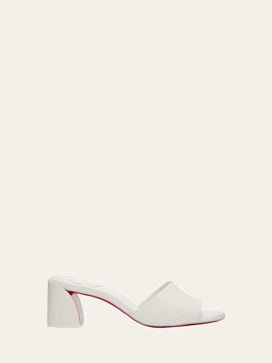 Christian Louboutin "Jane" smooth leather mule sandals. 2.25 in / 55 mm block heel. Open toe. Wide band upper. Slide style. Signature Louboutin red leather sole. Lining: Leather. Made in Italy. Online Inquiries: BGS21_X7F3J| Store Inquiries: #4889636
