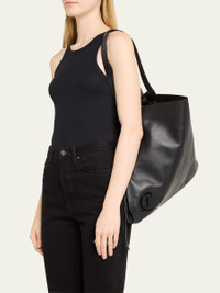 Christian Louboutin "Le" tote bag in leather Features tonal signature CL logo accent Flat top handles Open top Interior zipper pocket 15.4"H x 15.4"W x 2.75"D Item weight: 3.4 lb./ 1.5 kg Made in Italy Online Inquiries: BGS21_V65MZ| Store Inquiries: #4731168