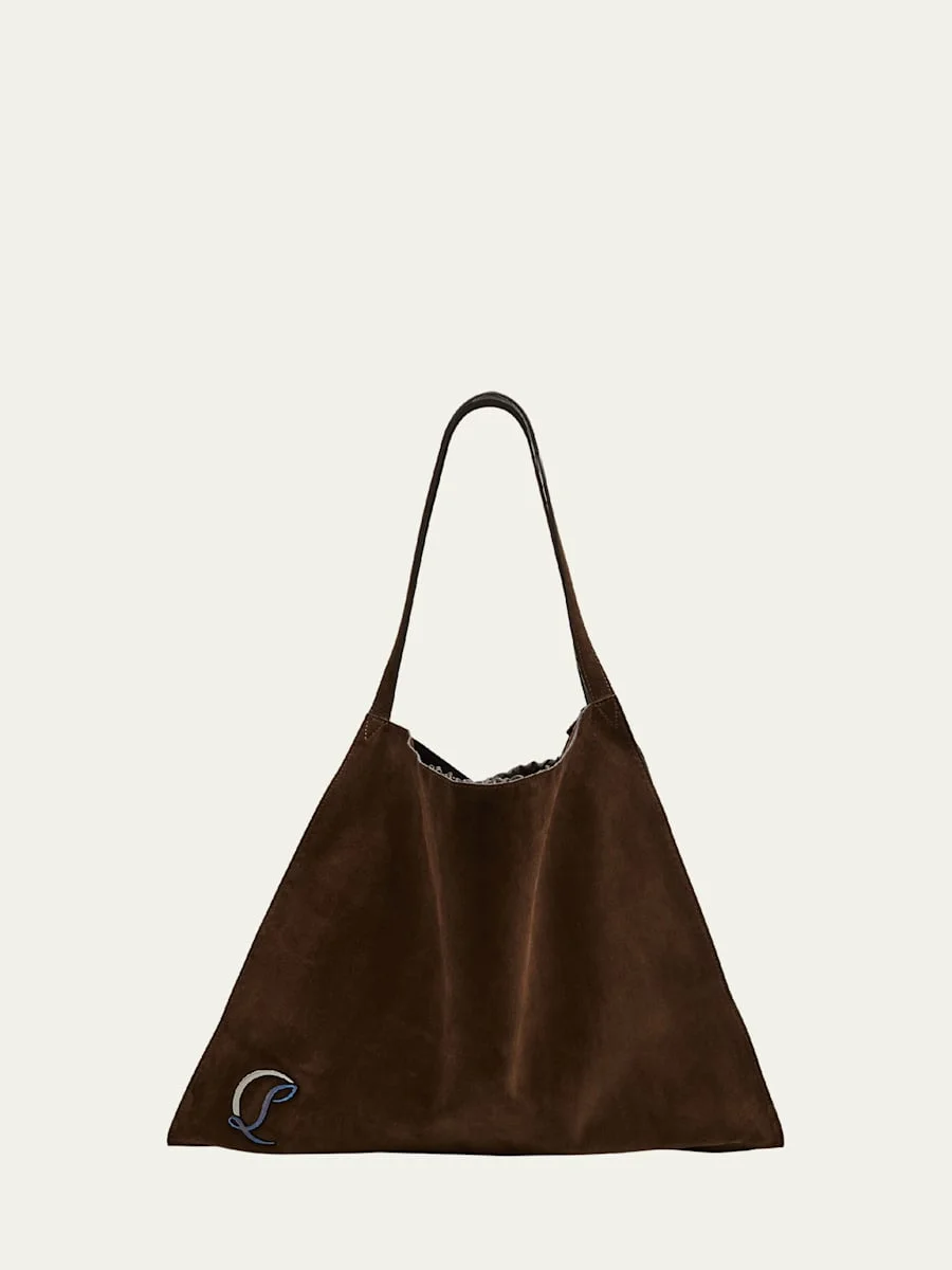 Christian Louboutin "Le" tote bag in suede and leather Features tonal signature CL logo accent Flat top handles Open top Interior zipper pocket 19.7"H x 19.7"W x 2.8"D Item weight: 3.4 lb./ 1.5 kg Made in Italy Online Inquiries: BGS21_V685B| Store Inquiries: #4796647