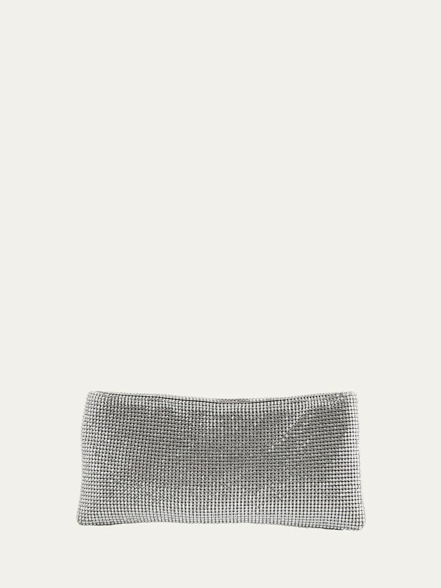 Christian Louboutin "Maykimay" pouch clutch bag in mesh strass crystals Zip top closure Interior, one slip pocket Signature red lining Lining: Cotton/leather Approx. 4.7"H x 9.8"W x 1"D Made in Italy Online Inquiries: BGS21_V6B2W| Store Inquiries: #4861436