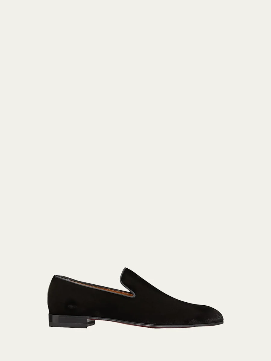 Christian Louboutin loafer in solid velvet. 1" stacked heel. Round toe. Notched vamp. Grosgrain topline. Slip-on style. Signature red leather sole. "Dandelion" is made in Italy. Sizing Note: Items runs small, consider ordering a size up. Online Inquiries: BGS21_N6G4R| Store Inquiries: #3198897