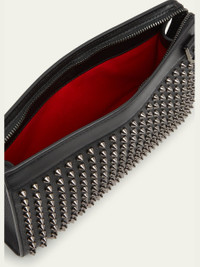Christian Louboutin "Funky" crossbody bag in smooth and grained leather adorned with signature Empire spikes Detachable adjustable webbing shoulder strap Can be styled by hand, shoulder, or crossbody Zip closure Exterior, one back zip pocket Signature Loubi red on the interior and zip pulls Approx. 5.91"H x 9.3"W x 2.0"D Made in Italy Online Inquiries: BGS21_NCXC5| Store Inquiries: #4970498