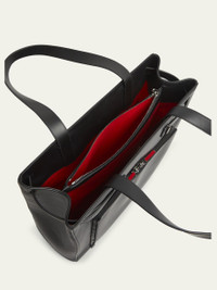 Christian Louboutin "Kyipouch" tote bag in soft grained calf leather featuring an exterior zip cpmpartment to hold your essentials Two flat top handles Open top Exterior, one front zip pocket Interior, one center zip compartment Signature Loubi red on the interior and zip pulls Adjustable leather side straps Approx. 15.16"H x 14.6"W x 4.9"D Made in Italy Online Inquiries: BGS21_NCXC7| Store Inquiries: #4970501