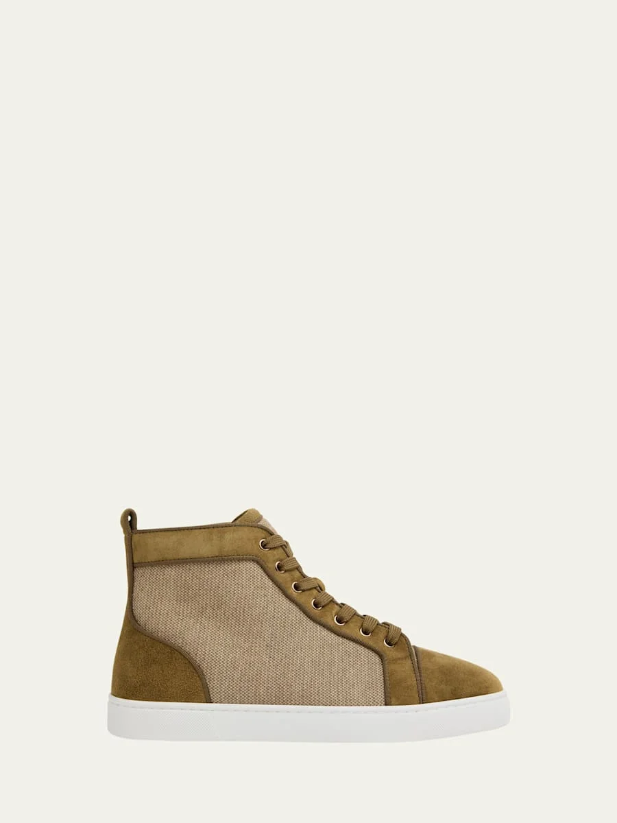 Men's Louis Textile and Suede Red-Sole High-Top Sneakers