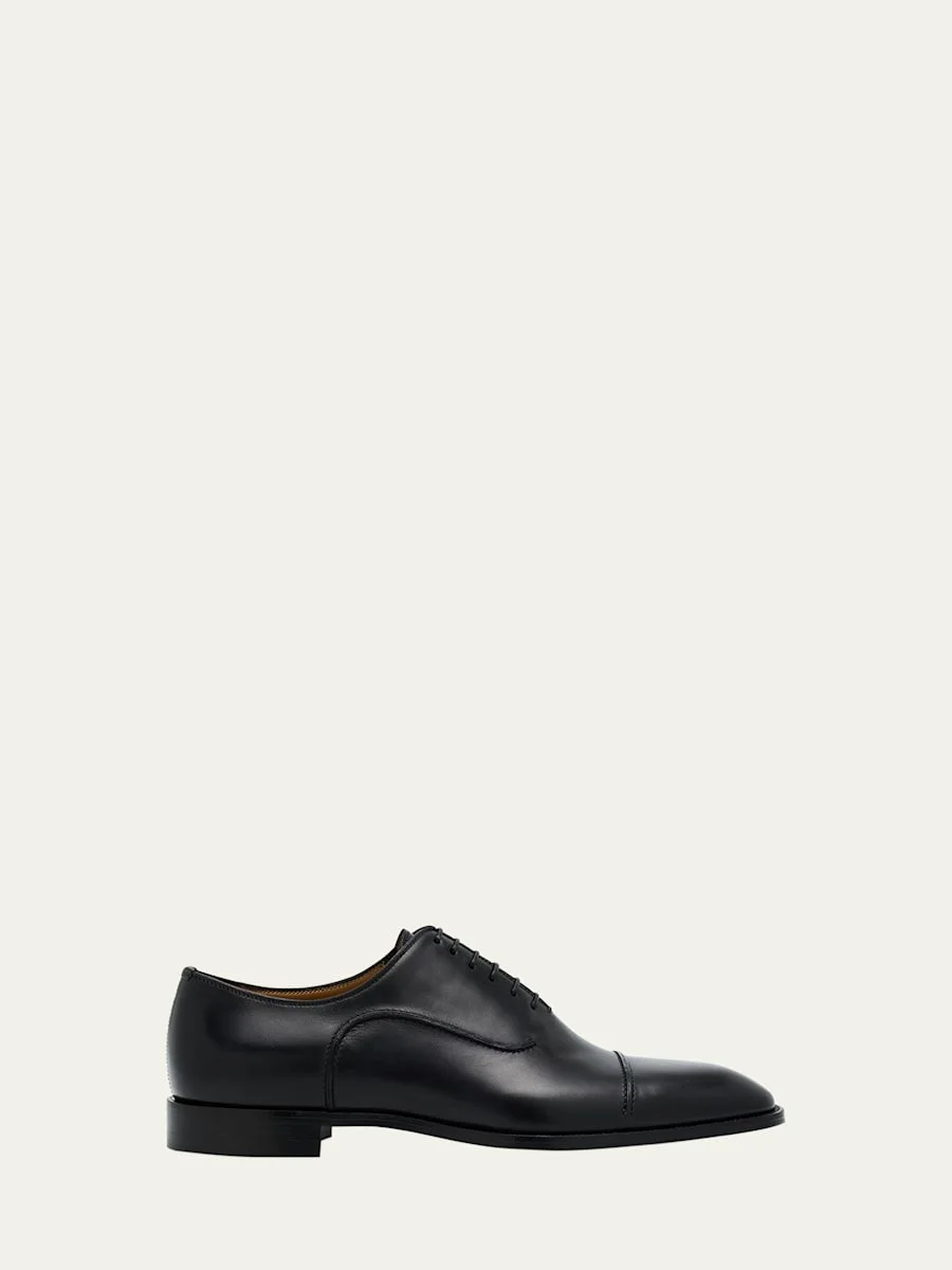 Christian Louboutin oxfords in smooth calf leather highlighting a semi-matte finish Elegant stitched detailing on the sides Stacked heel Round cap toe Lace-up vamp Branded footbed Signature Loubi red leather/rubber outsole Made in Italy Online Inquiries: BGS21_NDET0| Store Inquiries: #5031761