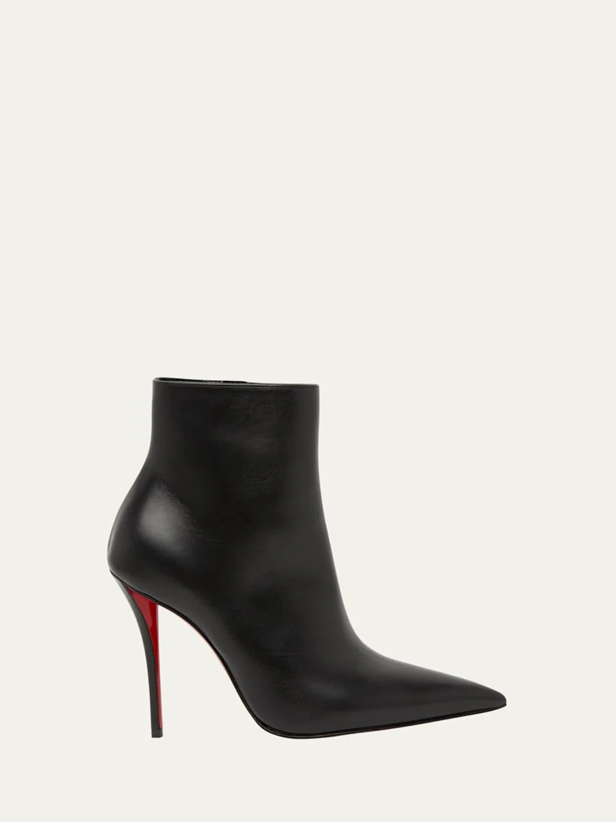 Christian Louboutin "Miss Z" sleek calf leather ankle booties 4.00 in / 100 mm stiletto heel Pointed toe Side zip eases dress Lining: Leather Signature red leather/Rubber outsole Made in Italy Online Inquiries: BGS21_X6UC0| Store Inquiries: #4970717