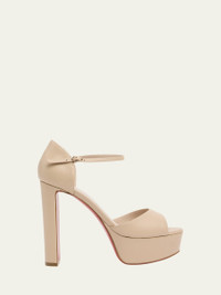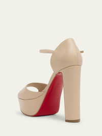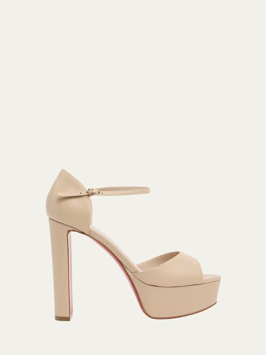 Christian Louboutin "Sandaloo" sleek calf leather platform sandals. 5.25 in / 130 mm block heel. Open toe. Adjustable ankle strap. Signature Louboutin red leather/rubber sole. Made in Italy. Online Inquiries: BGS21_X6UBX| Store Inquiries: #4970714