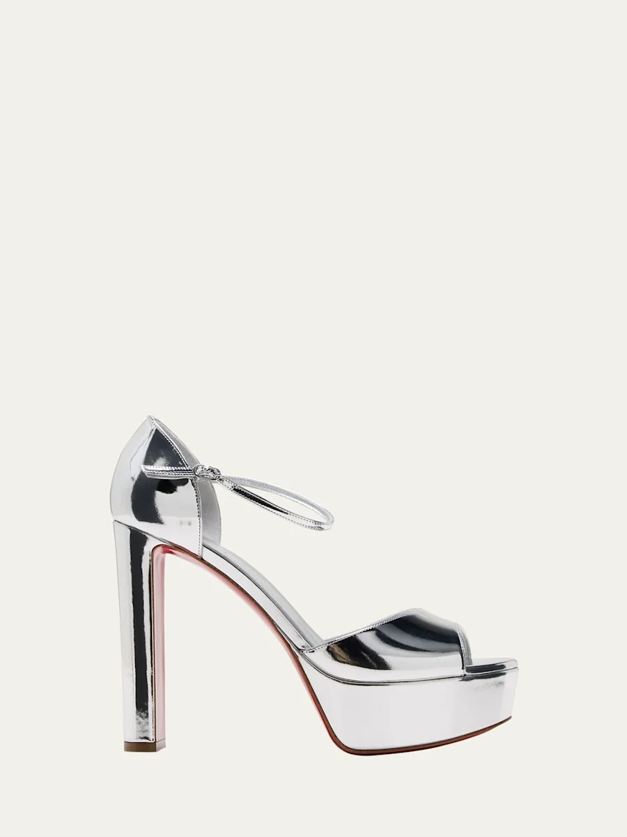 Christian Louboutin "Sandaloo" metallic leather platform sandals 5.25 in / 130 mm block heel Open toe Adjustable ankle strap Signature Louboutin red leather outsole Made in Italy Online Inquiries: BGS21_X6JB3| Store Inquiries: #4734522