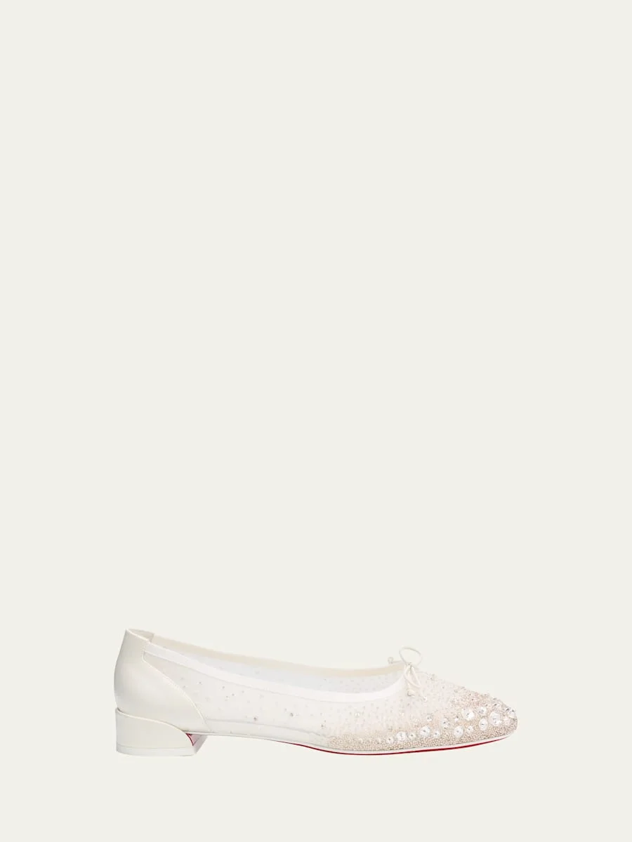 Christian Louboutin "Sweetie Jane" ballerina pumps with sparkling beads and crystal embellishments Block heel Slightly rounded toe Delicate bow detail Grosgrain trim Signature red leather outsole Nylon/silk/cotton Lining: Nylon Made in Italy