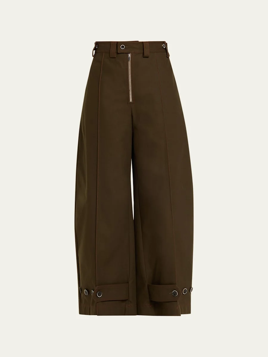 CHRISTOPHER JOHN ROGERS barrel trousers are crafted from cotton twill accented with contrast topstitching, pintuck front seams, and a buttontab hem Mid rise sits high on hip Back patch pockets Curved wide legs Ankle length Button/tab zip fly; belt loops Cotton Professional cleaning recommended, spot clean Made in USA