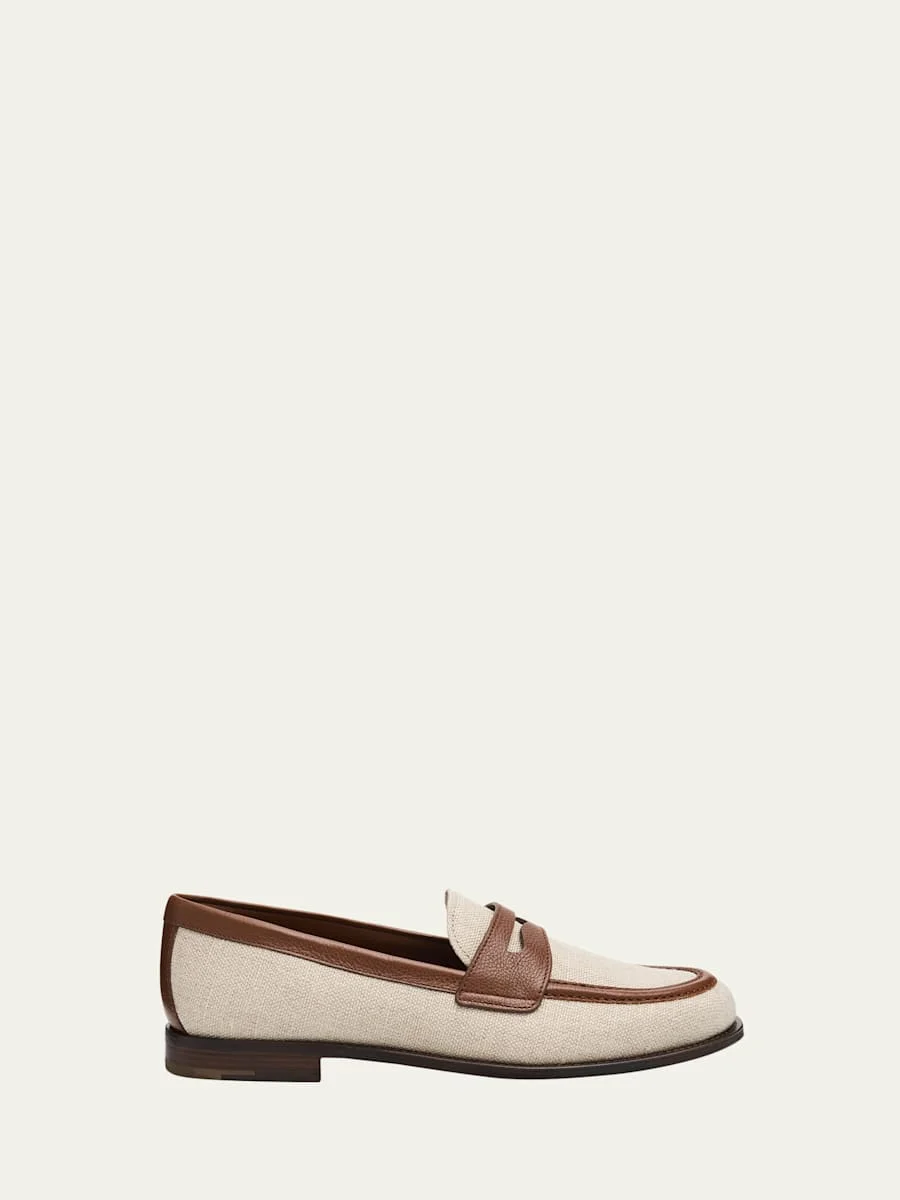 Heswall 2 Leather-Trimmed Canvas Penny Loafers