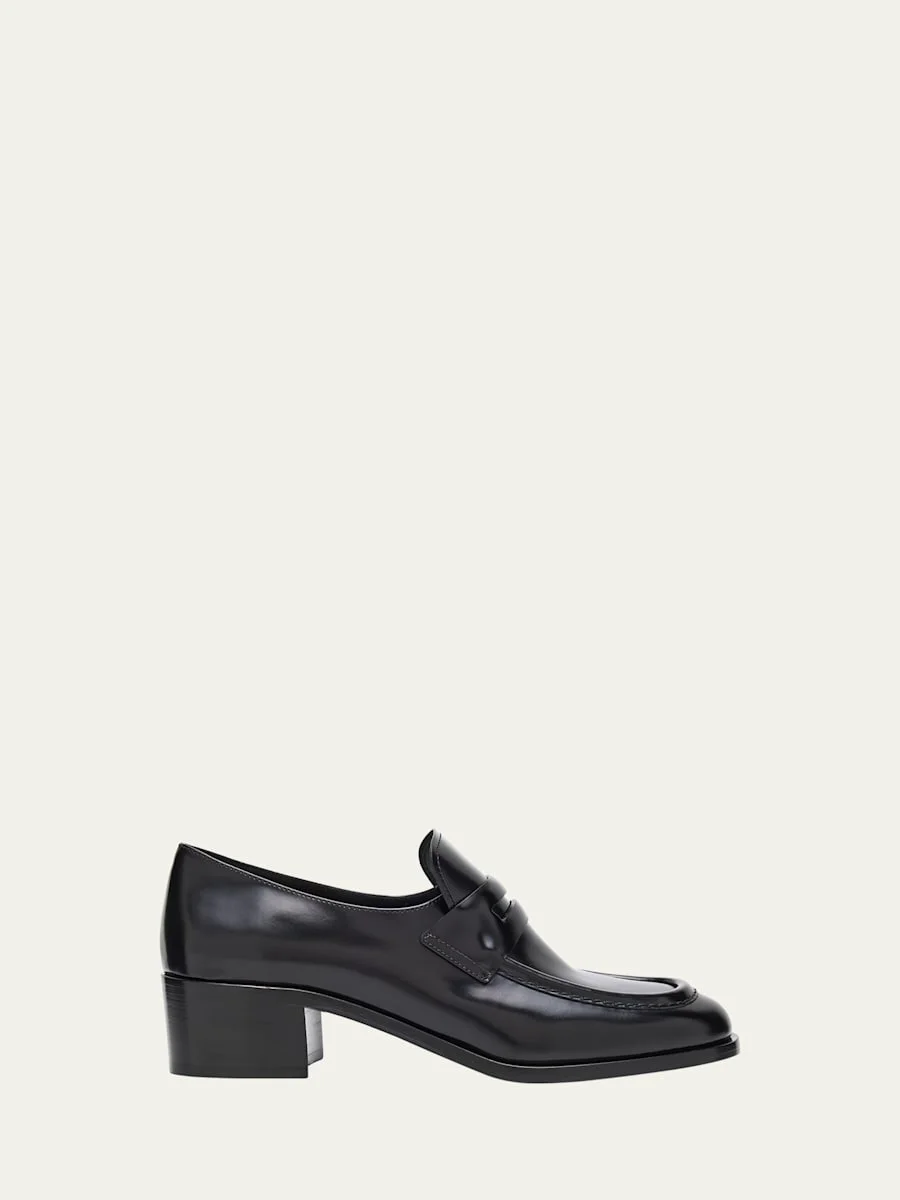 Church's calf leather loafers 1.25 in / 30 mm block heel Almond moc toe Notched vamp with keeper strap Slip-on style Leather/Rubber outsole Made in Italy Online Inquiries: BGS21_X6XCS| Store Inquiries: #5035756