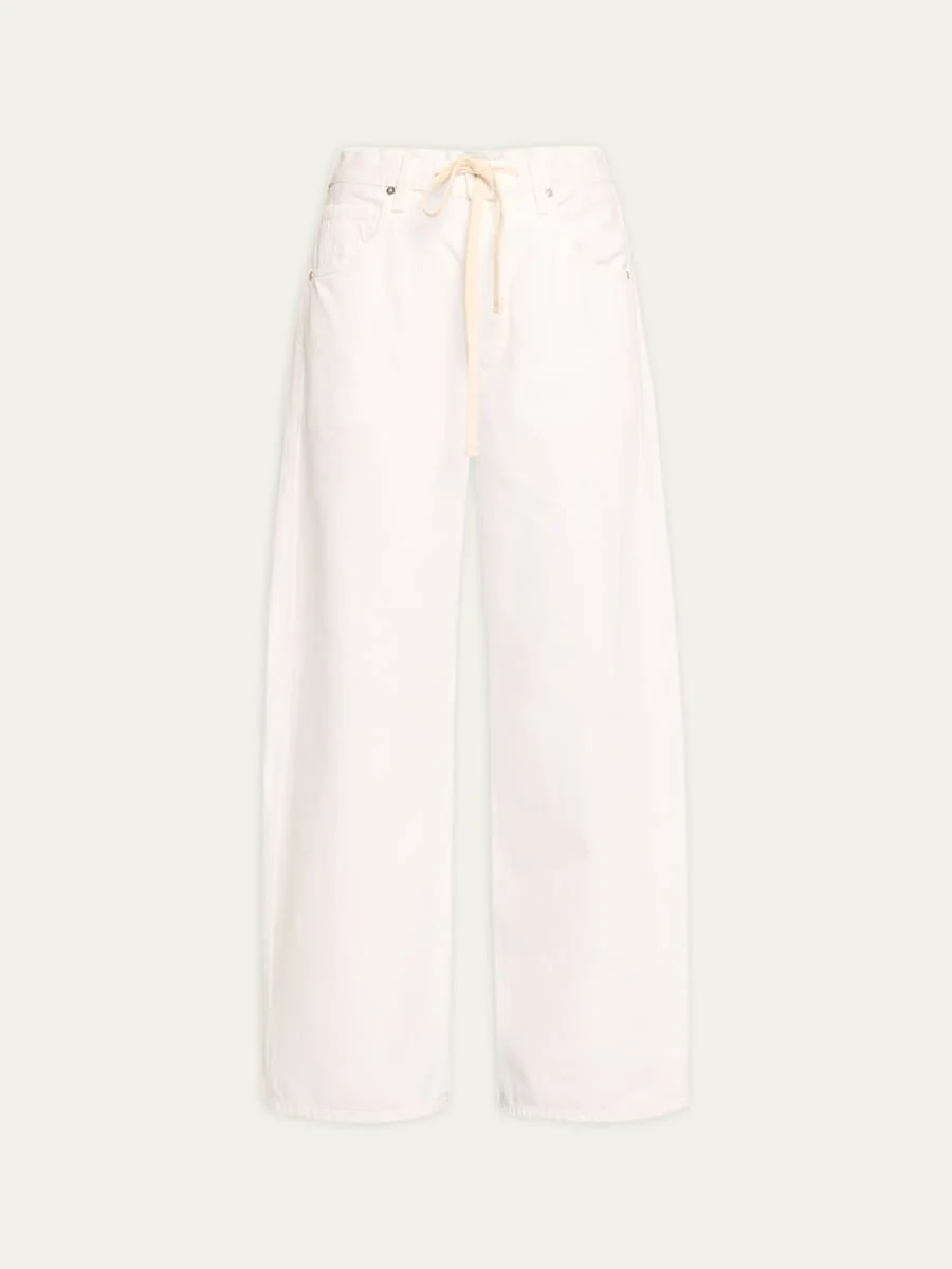 The Brynn Trouser is crafted in ultra-breathable organic cotton. Sitting relaxed at the waist into a wide-leg silhouette. The drawstring waistband adds the perfect casual summer touch. Citizens of Humanity "Brynn" wide-leg trousers in organic cotton High rise Drawstring waist Five-pocket style Relaxed fit Full length Button/zip fly; belt loops Cotton Made in USA Model is 5'10"/177cm. Online Inquiries: BGS21_T5SCN| Store Inquiries: #4808247