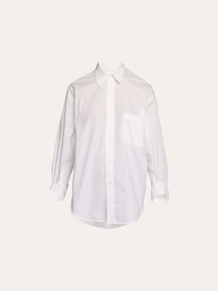 Citizens of Humanity "Kayla" cotton button-front shirt Point collar Long sleeves; button cuffs Patch pocket Oversized fit High-low hem Cotton Imported Proposition 65 warning for California residents Model is 5'10"/177cm. Online Inquiries: BGS21_T4V9N| Store Inquiries: #4576137
