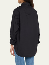 Citizens of Humanity "Kayla" cotton button-front shirt Point collar Dropped shoulders Long sleeves; button cuffs Single patch pocket Oversized fit Rounded hem Cotton Imported Model is 5'10"/177cm. Online Inquiries: BGS21_T5A00| Store Inquiries: #4665832
