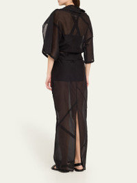 Co semi-sheer dress features diagonal seams High neckline Three-quarter sleeves Parachute silhouette Full length Back walking vent Cotton/silk Imported Online Inquiries: BGS21_B9SNB| Store Inquiries: #4957651