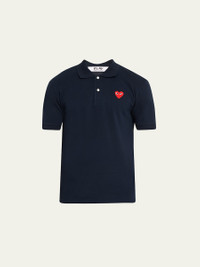 Comme des Garcons polo shirt with heart graphic at chest. Spread collar; two-button placket. Short sleeves. Straight hem. Pullover style. Cotton. Imported. Model is 6'1"/185cm. Online Inquiries: BGS21_N78MF| Store Inquiries: #2522780