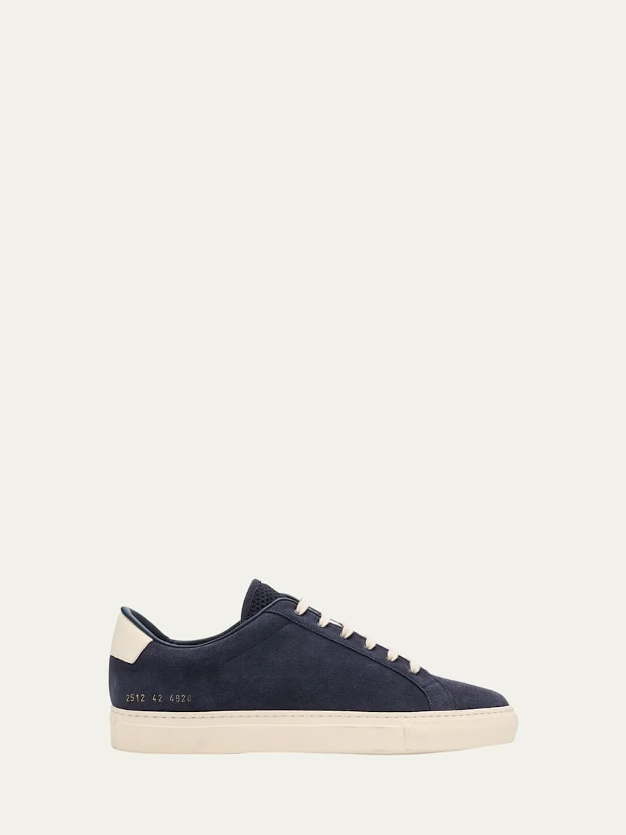 Common Projects lowtop sneakers in oiled suede for a modern finish Unique foiled serial code on the side Flat heel Round toe Laceup vamp Leather lining Padded collar Contrast leather backstay Rubber outsole Made in Italy