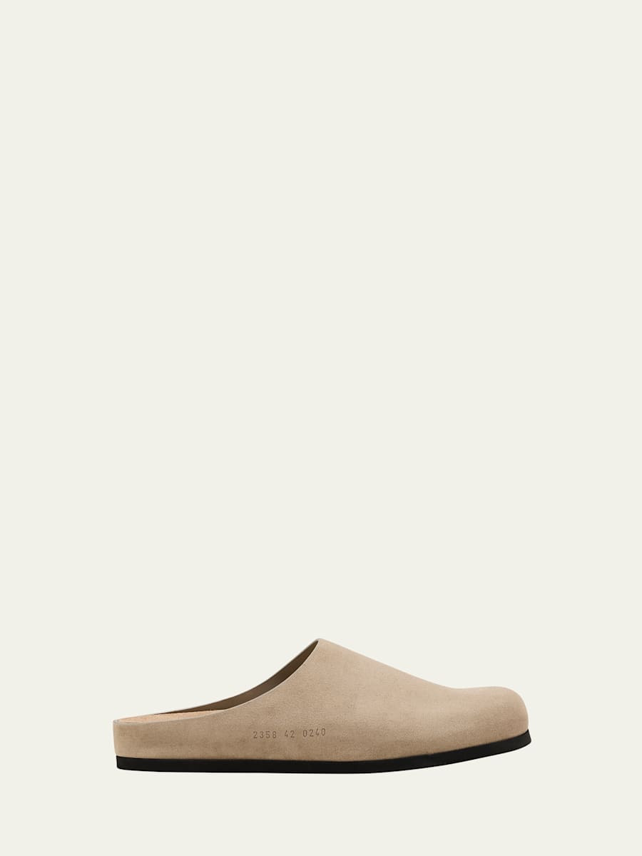 Common Projects clogs in suede calf leather Features signature debossed serial numbers on the side Flat heel Round toe Leather lining Rubber outsole Slip-on style Made in Italy Online Inquiries: BGS21_NBVX0| Store Inquiries: #4729353