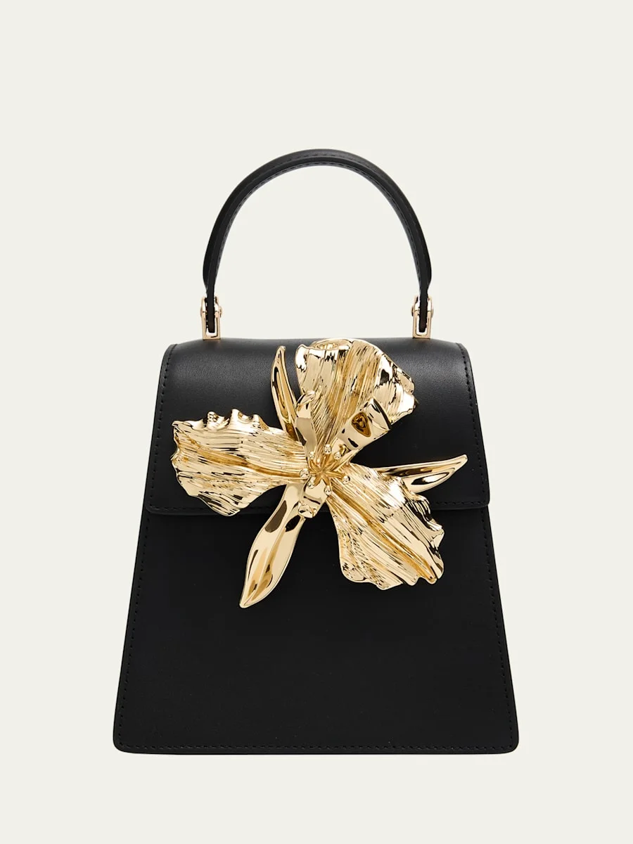 Emilia Flower-Embellished Leather Top-Handle Bag