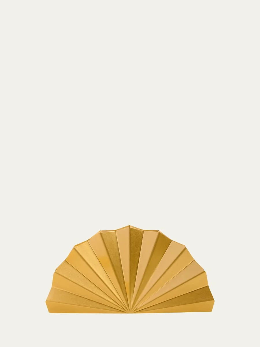 Cult Gaia "Esme" fan-shaped clutch bag in brass Framed top Approx. 5.1"H x 4.8"W x 2"D Spot clean Imported Online Inquiries: BGS21_V6GWX| Store Inquiries: #4988319