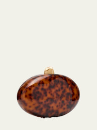 This ovalshaped Cult Gaia "Eviana" clutch bag is crafted in tortoise acrylic with a sculptural goldtone top clasp Detachable chain shoulder strap Can be worn as a clutch or shoulder bag Structured top with liftclasp closure Feet protect the bottom of the bag Approx. 5.1"H x 8.7"W x 3.2"D Imported