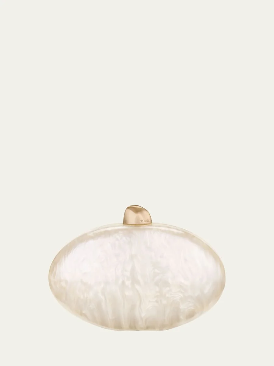 Cult Gaia "Evianna" clutch bag in marble-effect acrylic Detachable chain shoulder strap Can be worn as a clutch or shoulder bag Framed top with golden clasp closure Approx. 5.5"H x 4.2"W x 2.6"D Brass Spot clean Imported Online Inquiries: BGS21_V6G9M| Store Inquiries: #4975750