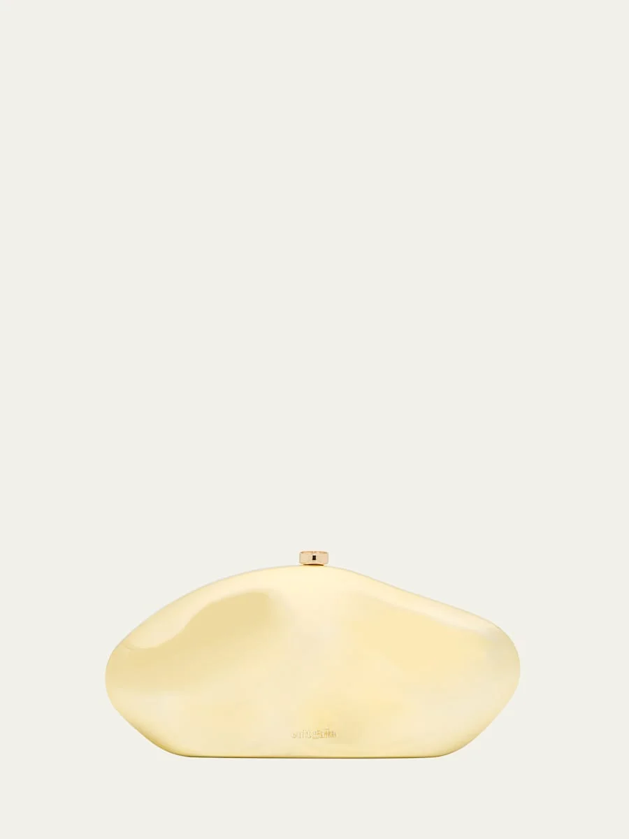Cult Gaia "The Caldera" clutch bag in metallic plastic and leather Structured top with lift-clasp closure Approx. 5.1"H x 11"W x 3.3"D Spot clean Imported Online Inquiries: BGS21_V6BB7| Store Inquiries: #4865546