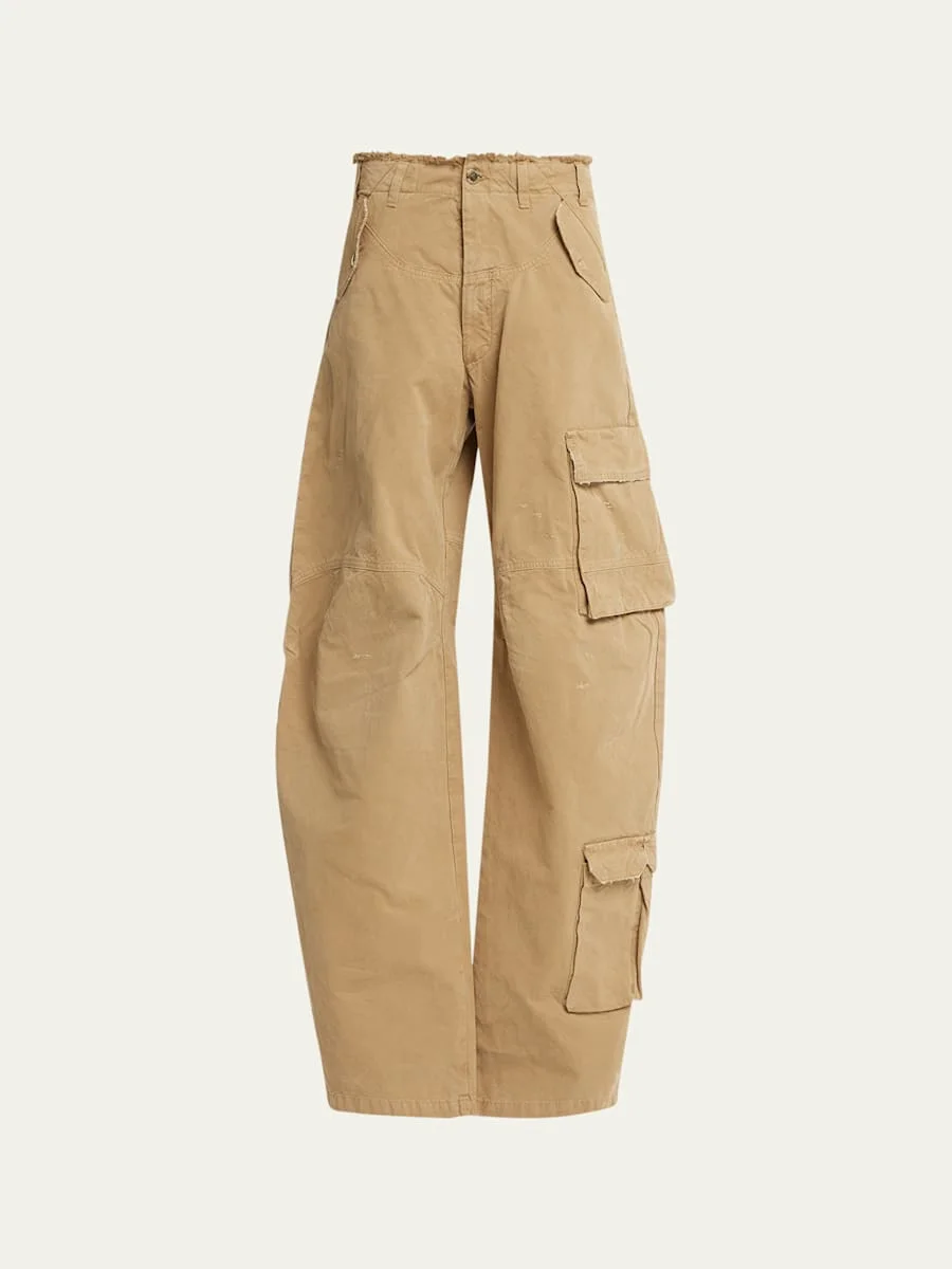 DARKPARK "Rosalind" wide-leg cargo jeans featuring flap pockets throughout High rise Tapered, baggy fit Full length Button/zip fly; belt loops Cotton Made in Italy Model is 5'10"/177cm. Online Inquiries: BGS21_T4GQS| Store Inquiries: #4494147