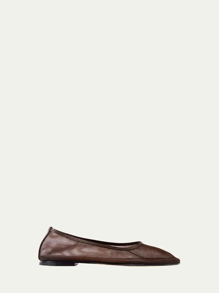 Dear Frances "Balla" ballerina flats are crafted from sheer Italian mesh with leather piping and is every bit as flattering as the classic ballerina but with a subtly seductive twist. Its near-nude composition and glove-like fit will lend sleekness and simplicity to wardrobes for work or for pleasure. Flat heel Round toe Slip-on style Leather outsole Lining: Leather Made in Italy Online Inquiries: BGS21_X6WLT| Store Inquiries: #5025718