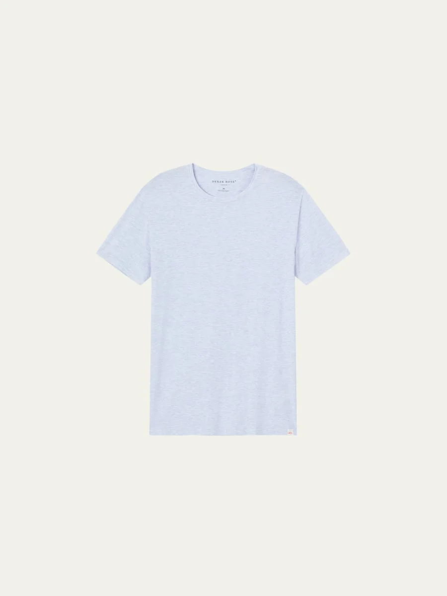 Derek Rose "Ethan" melange-knit lounge tee. Crew neckline. Short sleeves. Even-sewn hem; pullover style. MicroModal®/spandex. Imported. Model is 6'1"/185cm. Online Inquiries: BGS21_N9RA3| Store Inquiries: #4012805