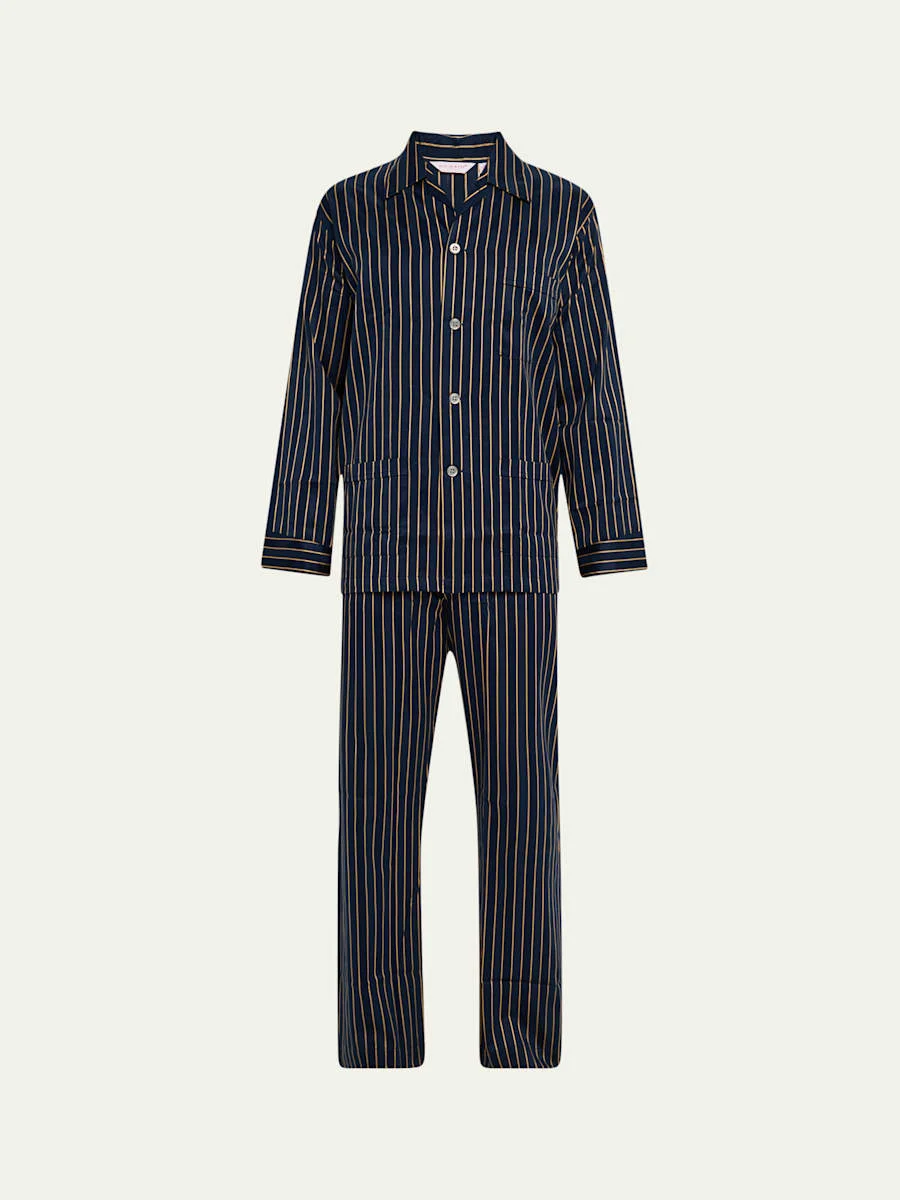 Men's Royal Satin Stripe Long Pajama Set
